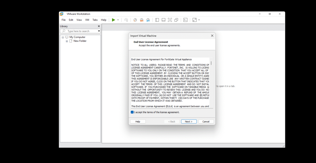 - “Finish” veya “Import” diyerek FortiGate VM’i VMware kütüphanesine ekleyin.